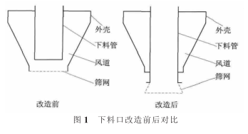 適當增加下料口內筒長(cháng)度,使水泥不堵塞下料口風(fēng)道,料與風(fēng)互不影響。